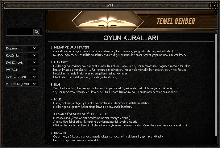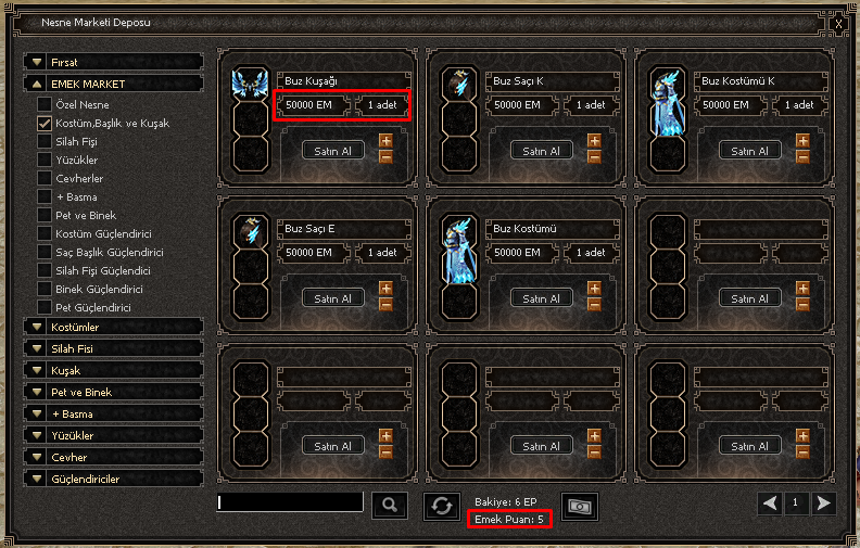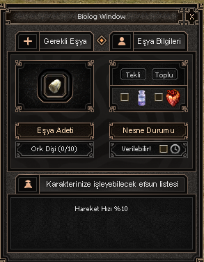 250 | Oyun içerisinde elde edilebilir. İstediği itemler boss ve metinlerde bulunur |
