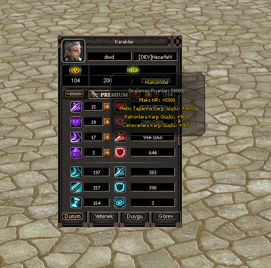 Max HP +4800 Max. SP +4000 HP Üretimi +%16 Metinlere Karşı Güç %80 Metinlere Karşı Güç %80 Max HP %32 |