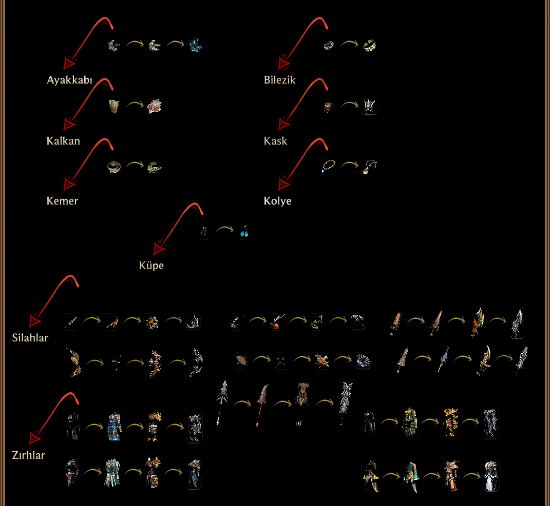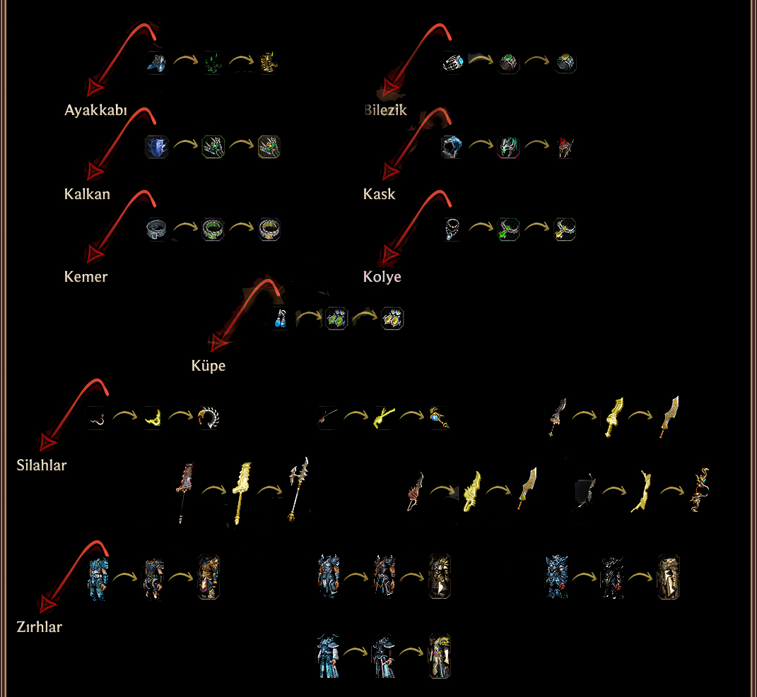| Efsane Evrim +70 STR | 4x Kırmızı , x4 Mavi , x4 Mor x4 Yeşil ot ve Evrim Metali karşılığında yapılır 150m yang ister |