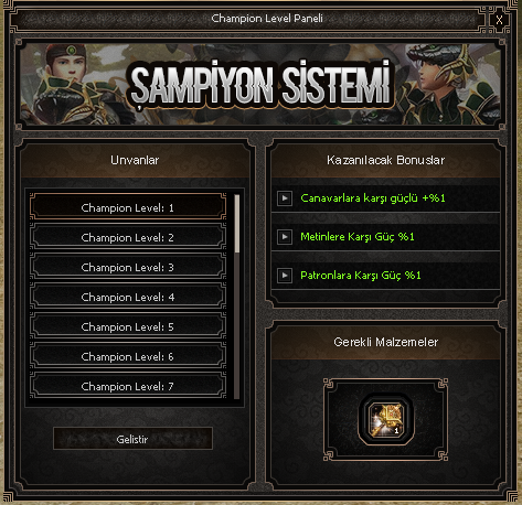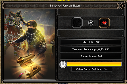 | Şampiyon Ünvan | +15 Yarı İnsan 3500 Max HP 6 Beceri Hasarı |